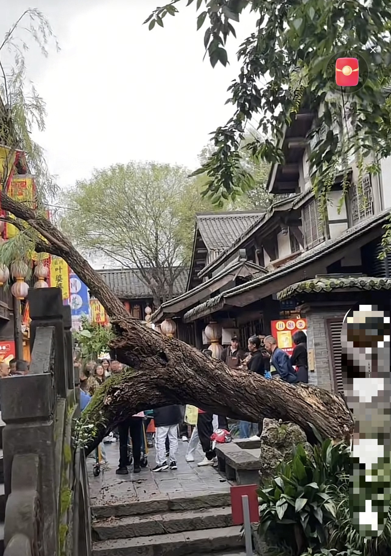 10月25日,多名网友爆料,成都一仿古街内一棵柳树倒地,不慎砸伤路人。视频显示,一棵柳树从较低处断裂,横倒在地,视频中已有救护车抵达现场展开救治。一名现场目击者称,倒地的树木较大。“应该有些年份了。”
